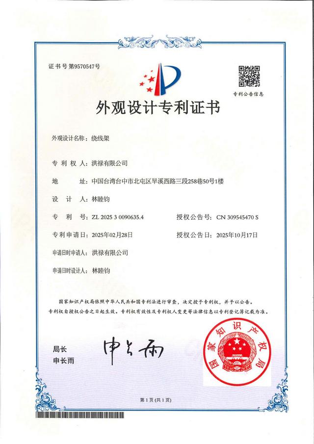 中国专利证书号码 : ZL 2025 3 0090635.4
