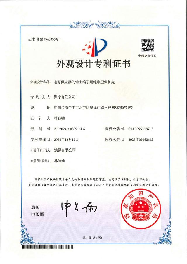 中国专利证书号码 : ZL 2024 3 0809151.6