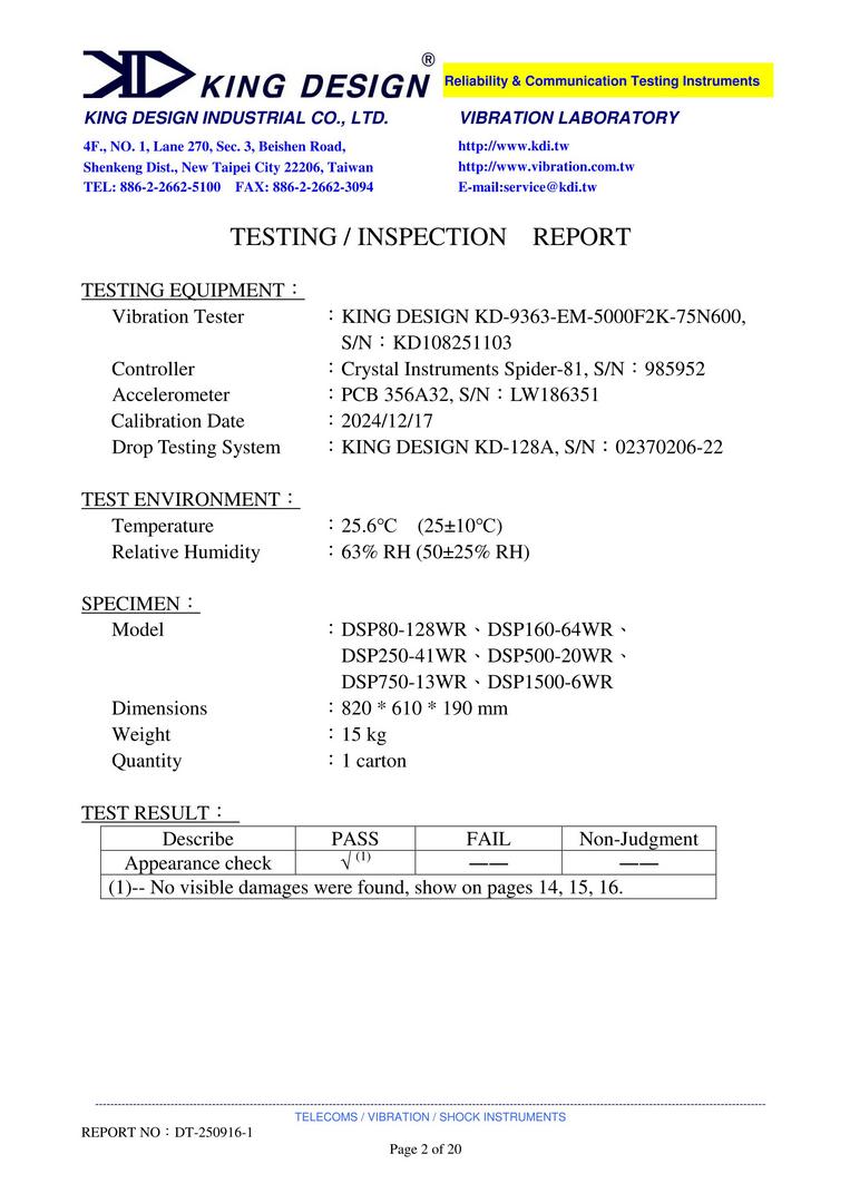 Wide range programmable dc power supply Certificate